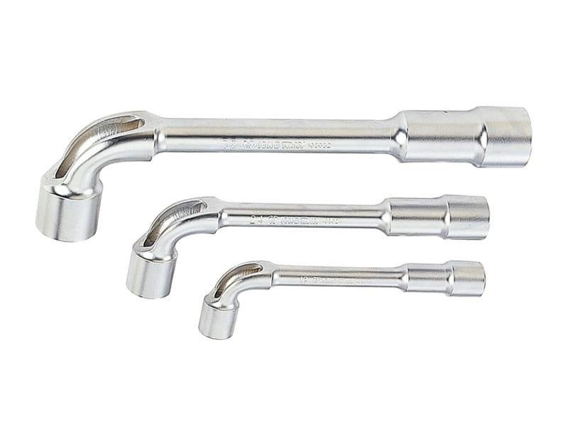 Wysokiej jakości klucz fajkowy 90 stopni o rozmiarze 16 mm. Specjalny otwór na zgięciu ułatwia pracę z długim gwintem. Krótsze ramię klucza posiada końcówkę 12-kątną, a dłuższe 6-kątną.