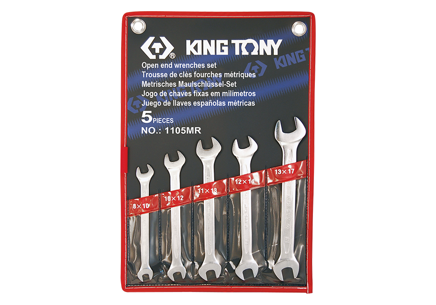 W zestawie klucze o wymiarach: 8x10, 10x12, 11x13, 12x14, 13x17 mm