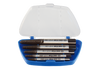Komplet wkrętaków do uszkodzonych śrub i szpilek. Ułatwia odkręcanie śrub, których nie można odkręcić przy pomocy zwykłych narzędzi. W zestawie wkrętaki o rozmiarach: 6,8,11,14,18 mm.