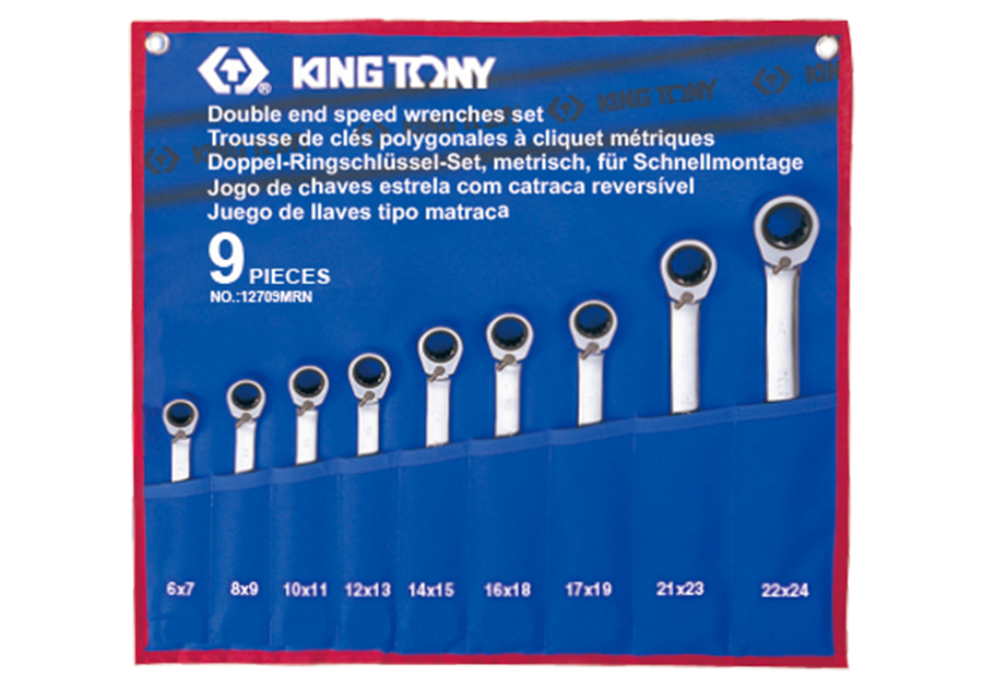 W zestawie klucze w rozmiarach: 6 x 7 , 8 x 9 , 10 x 11 , 12 x 13 , 14 x 15 ,16 x 18 , 17 x 19 , 21 x 23 , 22 x 24 mm