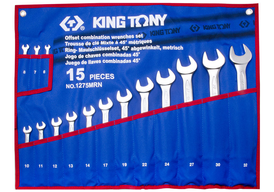 W zestawie klucze w rozmiarach: 6,7,8,10,11,12,13,14,17,19,22,24,27,30,32