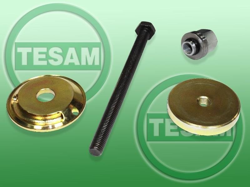 Przyrząd służy do wprasowania tulejek bez konieczności demontażu przedniego wahacza oraz aluminiowej belki
