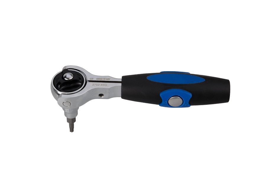 • GRZECHOTKA 1/4" Z RUCHOMĄ GŁOWICĄ ORAZ UCHWYTEM 72 ZĘBY, Z PRZYCISKIEM, 114mm,  UCHWYT  GUMOWY
