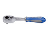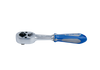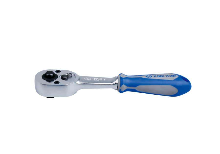 Grzechotka 1/4" King Tony. Rączka wykonana ze stali chromowo wanadowej, polerowana i chromowana. Wkład ze stali molibdenowej.24 zęby, przeskok co 15 stopni. Grzechotka z przyciskiem ułatwiającym szybkie zdejmowanie nasadki. Długość 130mm, uchwyt gumowy.