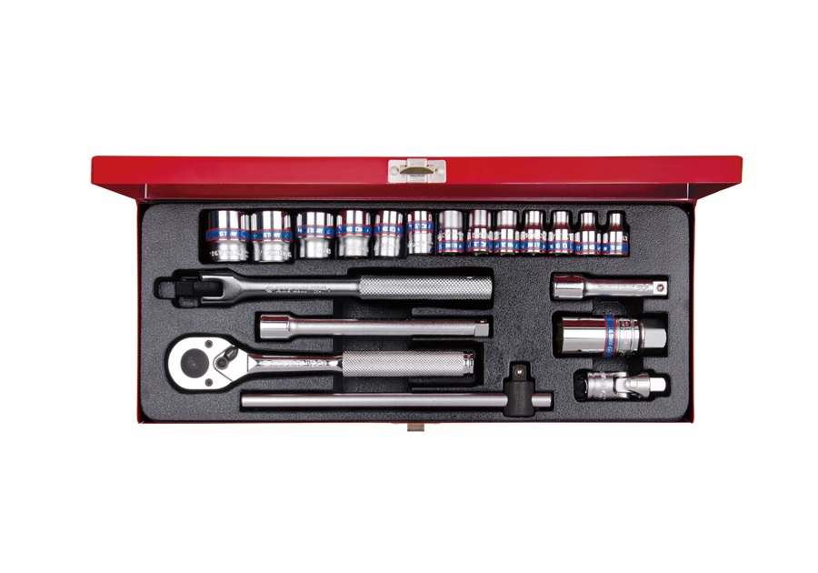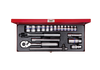 Komplet narzędzi 3/8" King Tony w metalowej kasecie. W zestawie znajdują się: