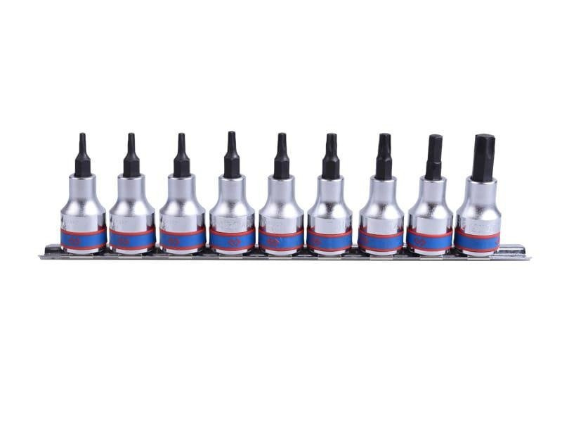 W zestawie szyna 210 mm i nasadki imbusowe z końcówką Torx: T10 , T15 , T20 , T25 , T27 , T30 , T40 , T45 , T50