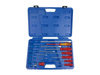 Komplet wkrętaków standardowych oraz izolowanych King Tony. W zestawie znajduje się 14 śrubokrętów: 6 krzyżakowych oraz 8 płaskich. Standardowe wkrętaki krzyżakowe: No.0x75, No.1x100, No.2x100, No.2x150, No.2x38, No.3x150, płaskie: 3x75, 4x100, 5.5x100, 6.5x150, 6.5x38, 8x200, wkrętak izolowany płaski 6.5x150 oraz wkrętak ślusarski płaski 10x300