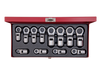 W zestawie nasadki w rozmiarach: 8, 9, 10, 11, 12, 13, 14, 15, 16, 17, 18, 19 mm