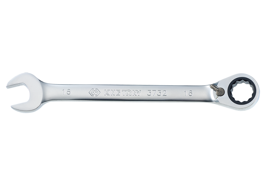 Klucz płasko-oczkowy z grzechotką dwukierunkową King Tony. Całkowita długość klucza 208mm. Rozmiar klucza 16mm. Grzechotka dwukierunkowa umożliwia zmianę kierunku pracy klucza bez zdejmowania go ze śruby. Narzędzie wykonane z wysokiej jakości stali chromowo wanadowej, polerowane i chromowane.
