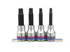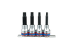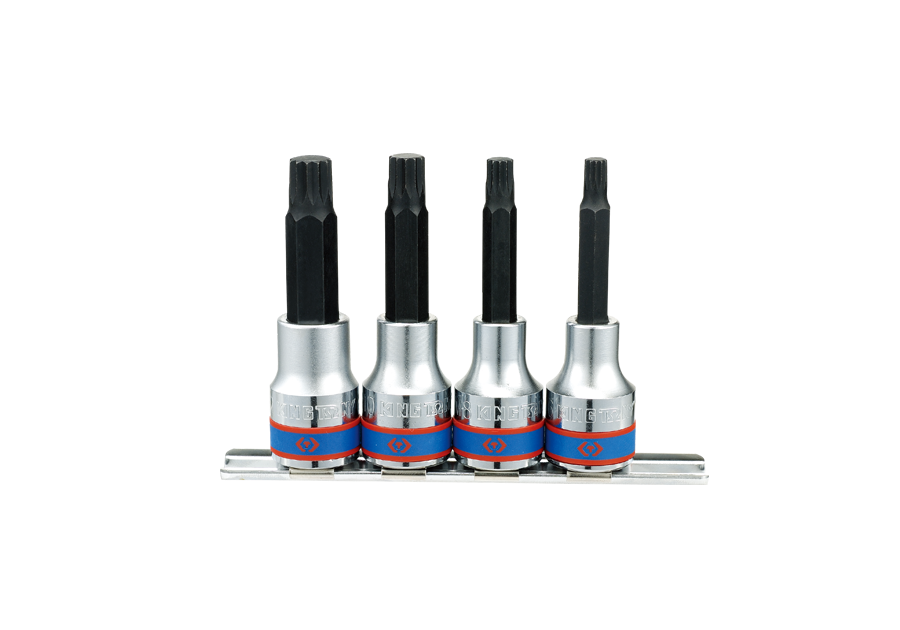 Zestaw nasadek 1/2" z końcówką spline. W zestawie znajdują się nasadki w rozmiarach M8, M10, M12, M14 oraz M16. Do zestawu dołączana jest szyna długości 150mm z pięcioma klipsami na nasadki 1/2". Szyna posiada mocowania do ściany.