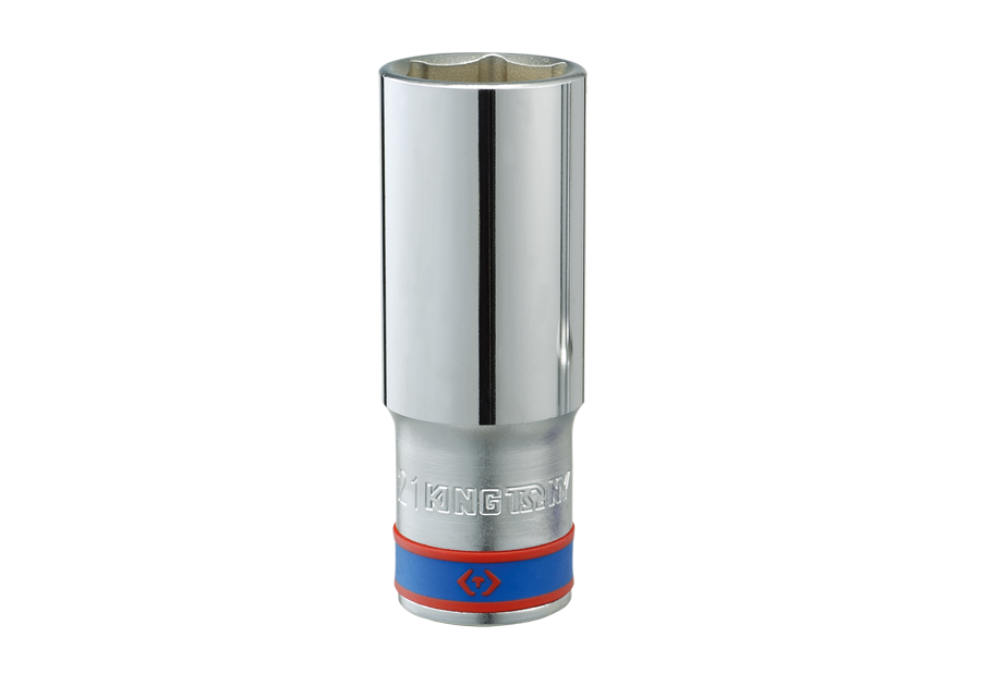Nasadka długa 6-kątna 1/2" 13mm firmy King Tony. Całkowita długość nasadki77mm. Nasadka wykonana ze stali chromowo wanadowej, polerowana i chromowana. Z oryginalnym gumowym paskiem King Tony