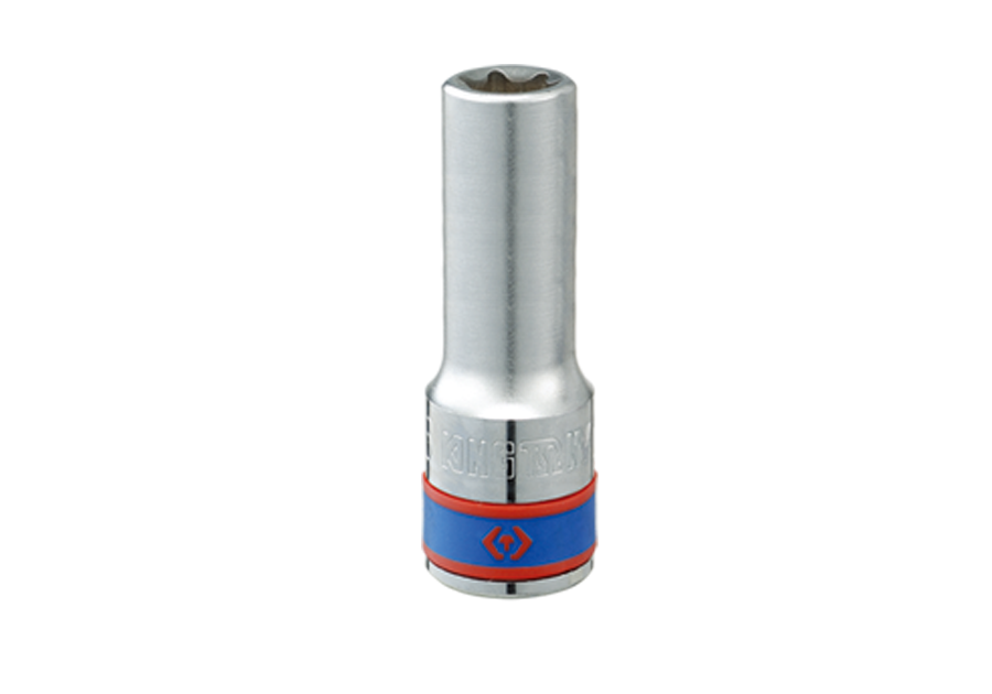 Nasadka długa gwiazdkowa 1/2" E10 firmy King Tony. Długość nasadki 77mm, stal chromowo wanadowa, wykończenie chromowe.