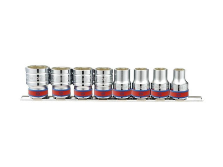 Sprawdź dostępnośćKomplet nasadek 1/4" King Tony na metalowej szynie. W zestawie 8 nasadek 6-kątnych krótkich w rozmiarach calowych: 3/8", 7/16", 1/2", 9/16", 1/16", 3/4", 13/16", 7/8". Do zestawu dołączana jest szyna na nasadki długości 230mm