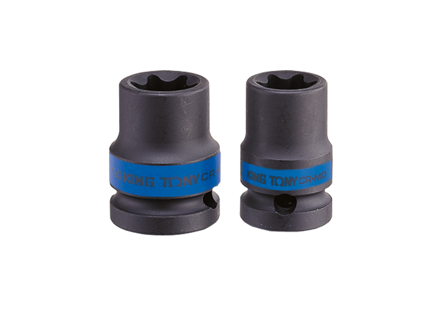 Nasadka krótka udarowa gwiazdkowa 1/2" firmy King Tony. Rozmiar nasadki e16, całkowita długość 38mm. Nasadka wykonana ze stali chromowo molibdenowej