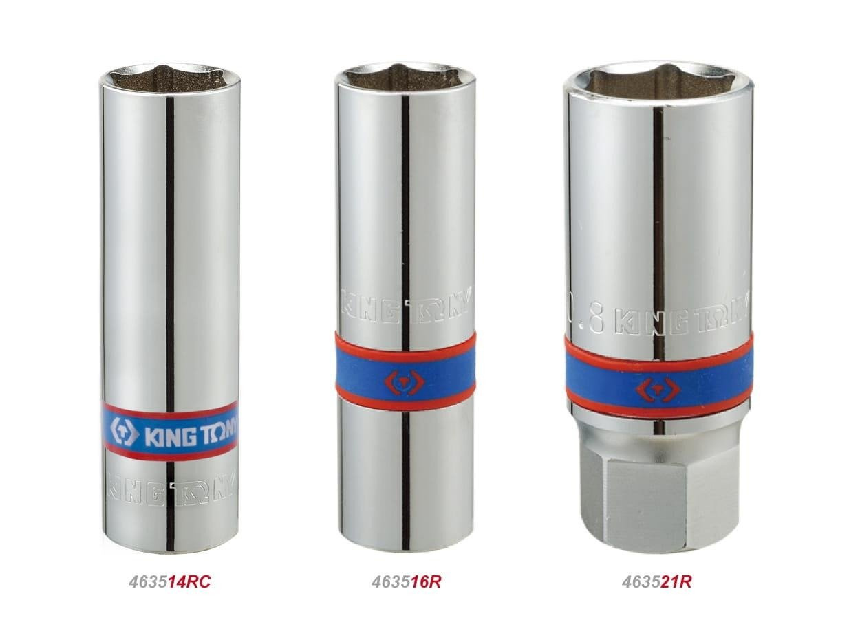 Nasadka do świec 1/2" firmy King Tony. Rozmiar nasadki 21mm, długość 68mm. Nasadka 6-kątna, wykonana ze stali chromowo wanadowej, polerowana oraz chromowana. Dla ułatwienia pracy wewnątrz nasadki znajduje się gumowa wkładka, która przytrzymuje świece.