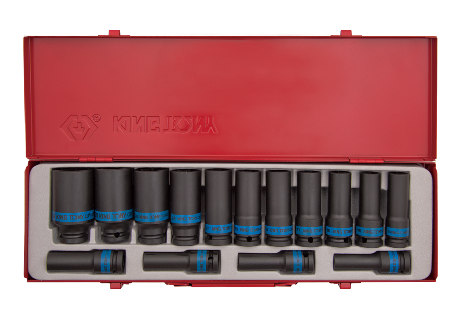 W zestawie nasadki udarowe długie 1/2" (4430M) w rozmiarach: 8,9,10,12,13,14,15,16,17,18,19,20,21,22,24 mm