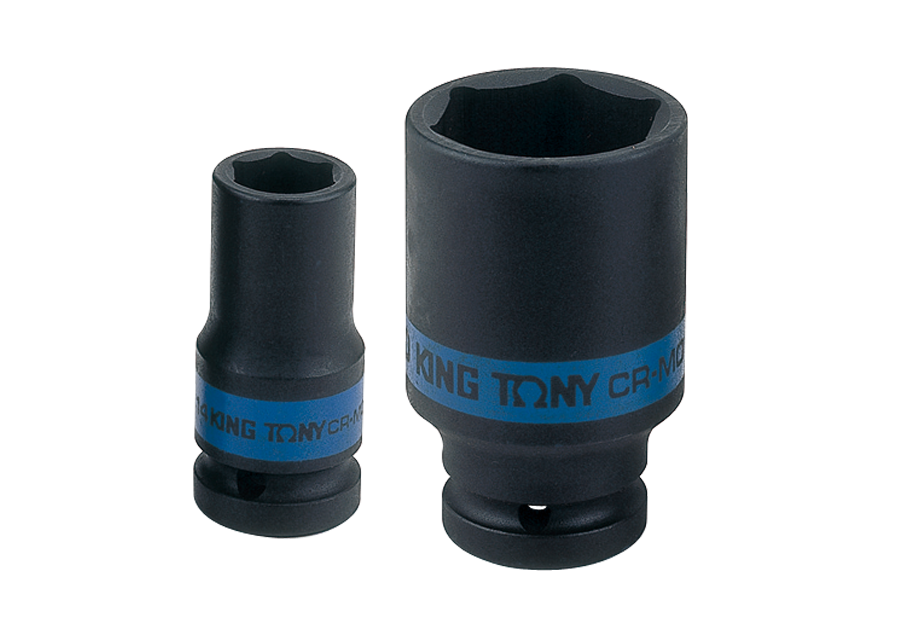 Cienkościenna nasadka udarowa 1/2" King Tony. Nasadka krótka, 6-kątna w rozmiarze 22mm x 52mm (rozmiar x całkowita długość nasadki). Nasadka wykonana ze stali chromowo molibdenowej.