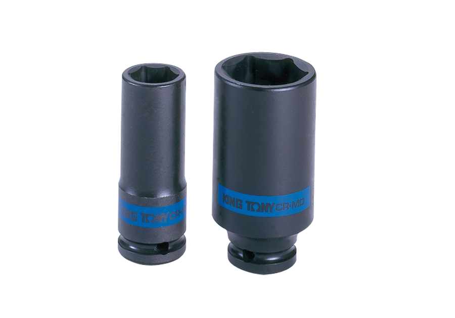 Cienkościenna nasadka udarowa 1/2" King Tony. Nasadka długa, 6-kątna w rozmiarze 12mm x 80mm (rozmiar x całkowita długość nasadki). Nasadka wykonana ze stali chromowo molibdenowej.