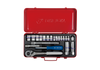 • ZESTAW NASADEK 1/4'' + 3/8''  21cz.  KRÓTKIE  12-kąt. 10 - 19mm, 6-kąt. 4 - 9mm  Z  AKCESORIAMI, CHROM, KASETA