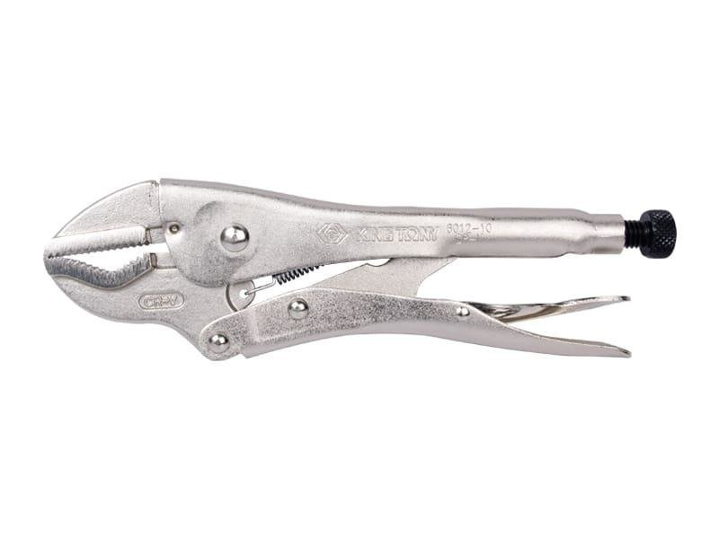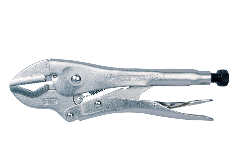 Szczęki V z obcinaczem do drutu, śrubą nastawną i dźwignią zwalniającą.
