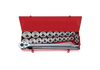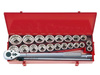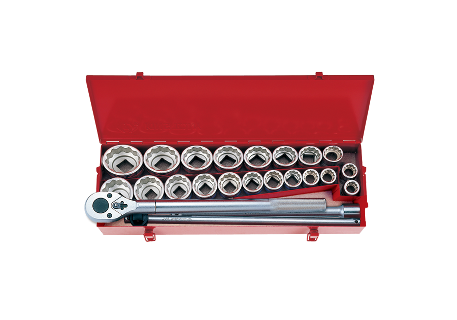 Zestaw metryczno-calowych nasadek oraz narzędzi 3/4" firmy King Tony. Zestaw w metalowej kasecie zawiera 20 nasadek 12 kątnych oraz grzechotkę z moletowanym uchwytem, dwie przedłużki i pokrętło przesuwne. Zawarte w zestawie, krótkie nasadki 12-kątne są w rozmiarach metrycznych: 22, 24, 27, 30, 32, 36, 38, 41, 46, 50 oraz calowych 1", 1-1/8", 1-1/4", 1-5/16", 1-3/8", 1-7/16", 1-1/2", 1-5/8", 1-3/4", 2"