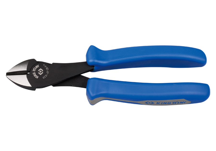 Wzmocnione szczypce tnące boczne King Tony. Całkowita długość szczypiec 200mm, średnica przewodu do 4.0mm w zależności od twardości. Wygodna rączka z tworzyw sztucznych.