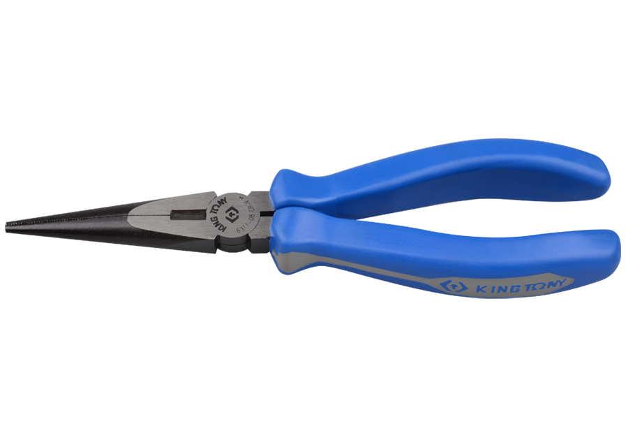 Szczypce uniwersalne wąskie firmy King Tony, typ europejski. Maksymalna średnica przecinanego przewodu to 4.0mm w zależności od twardości materiału. Wygodna w użyciu plastikowa rączka. Długość szczypiec 163mm