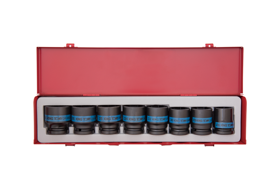 Zestaw standardowych oraz cienkościennych 3/4" King Tony. W komplecie znajdują się nasadki cienkościenne 26, 29, 30 oraz standardowe 32, 34, 35, 36, 38. Cały zestaw w metalowej kasecie.