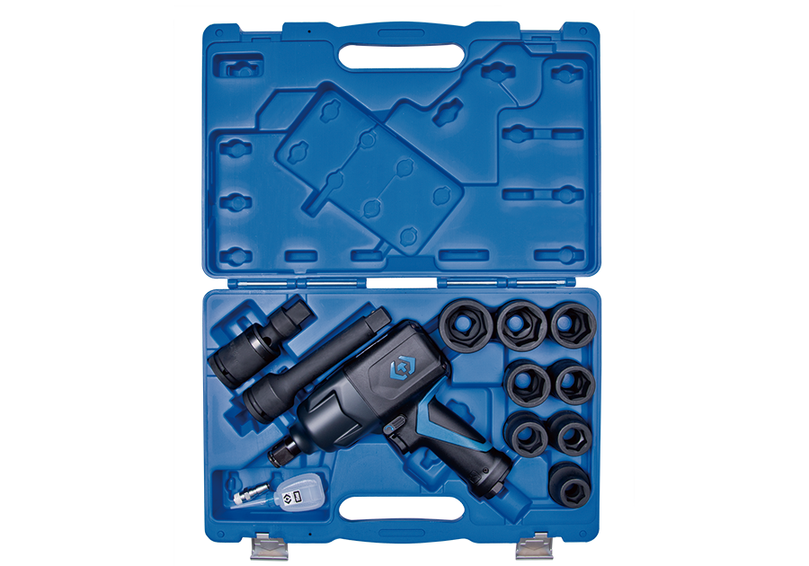 • ZESTAW- KLUCZ UDAROWY PNEUMATYCZNY 3/4" 1491Nm + NASADKI UDAROWE 19 - 38mm Z AKCESORIAMI, WALIZKA, 13 CZ.