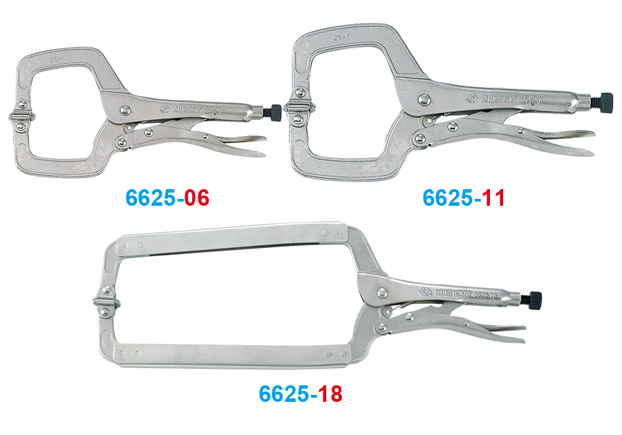 Blacharskie szczypce zaciskowe King Tony z ruchomą szczęką. Długość całkowita 280mm, maksymalna rozpiętość szczęk 54mm