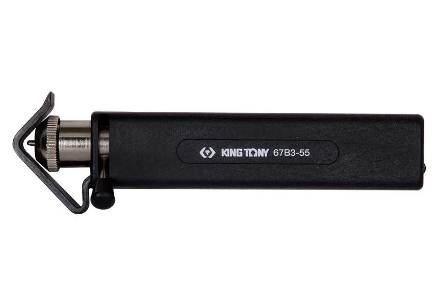 Z wewnętrznym obrotowym obcinakiem i zakrzywionym ostrzem. Wyposażony w strzemiączko o stalowych krawędziach do usuwania izolacji z długich odcinków kabli w jednej operacji. Głębokość cięcia ustawia się za pomocą śruby redełkowej na końcu rękojeści. Rękojeść z tworzywa sztucznego.