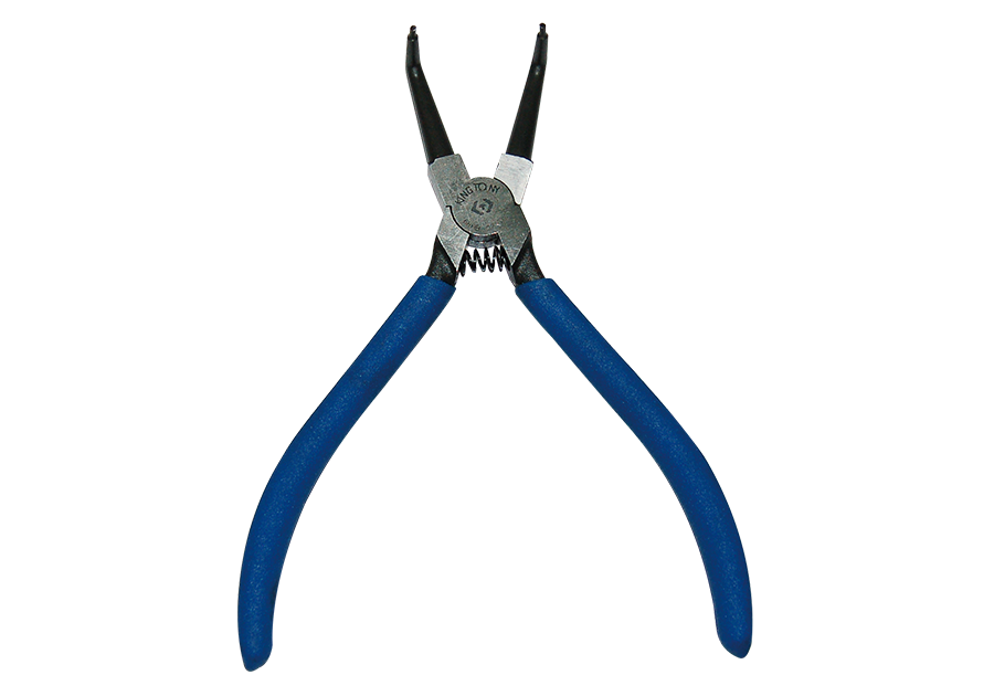 Szczypce do pierścieni segera wewnętrznych wygięte, uchwyt pcv 125mm, średnica końcówek 1,3 mm, zakres 12-28 mm