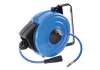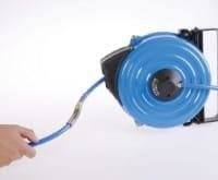 Automatyczny zwijacz z wężem do sprężonego powietrza. Można go przykręcić np. do ściany lub ścianki regału na tyle wysoko, by nie przeszkadzał w pracy, a końcówka z szybkozłączką była w zasięgu ręki .Bęben ma wbudowaną sprężynę powrotną – po zakończeniu pracy mechanizm szybko zwinie wąż. Maksymalne ciśnienie robocze: 20 bar, przyłącze 1/4”.
