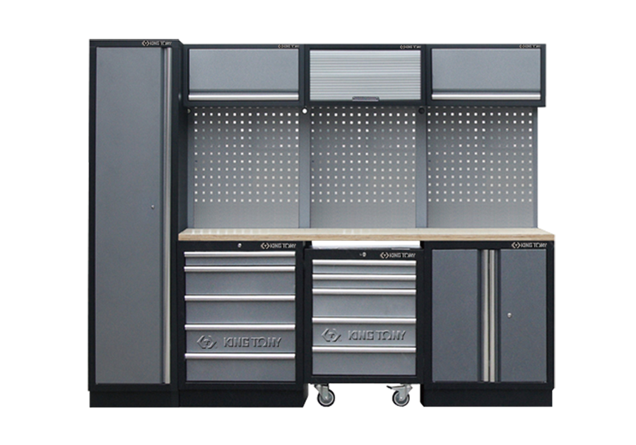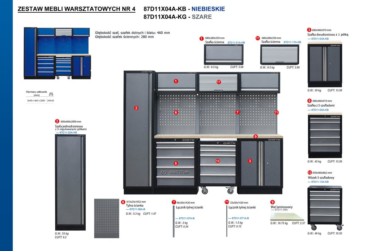 Sprawdź dostępnośćZestaw mebli warsztatowych King Tony o wymiarach 2640 mm (dł.) x 460 mm (gł.) x 2000 mm (wys.).