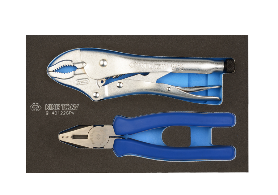 W zestawie szczypce uniwersalne, typ europejski uchwyt PP+PPR 213 mm i szczypce "mors" okrągłe szczęki 254 mm, chrom. Wkład z pianki.