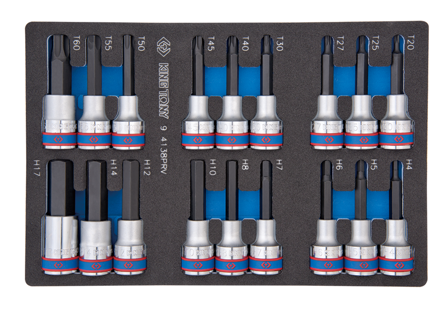 ZESTAW DŁUGICH NASADEK 1/2" HEX H4 - H17 + TORX T20 - T60, WKŁAD Z PIANKI DO WÓZKA