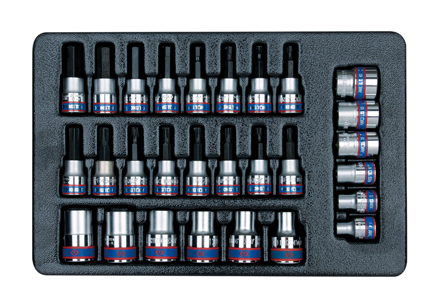 • ZESTAW NASADEK 3/8" + 1/2", HEX H3 - H12, TORX T15 + T50, GWIAZDKI E8 - E20, WKŁAD DO WÓZKA