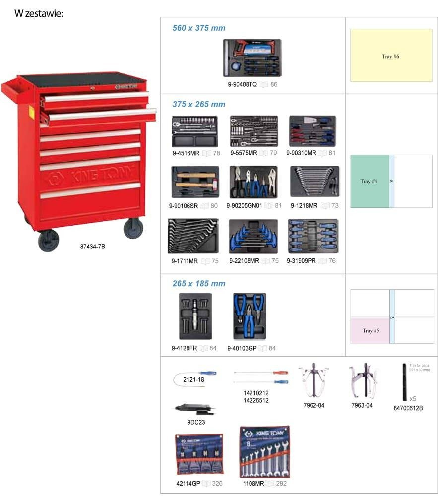 • WÓZEK  WARSZTATOWY  87434-7B - CZERWONY,  Z ZESTAWEM NARZĘDZI 197cz.