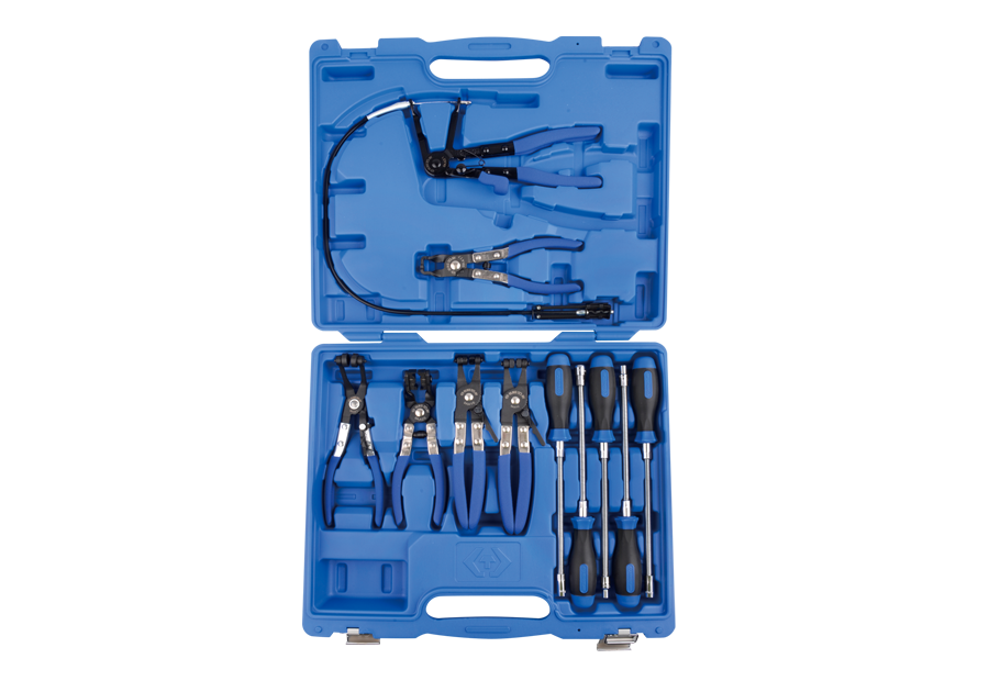 - 9AA31 - szczypce z przewodem elastycznym do opasek, długość przewodu 630 mm, długość szczypiec 223 mm, średnica 12-53 mm. Do zakładania i zdejmowania zacisków sprężynowych, elastyczne płaskie szczęki ułatwiające dostęp do trudno dostępnych miejsc. Zastosowanie: w silnikach popularnych aut.