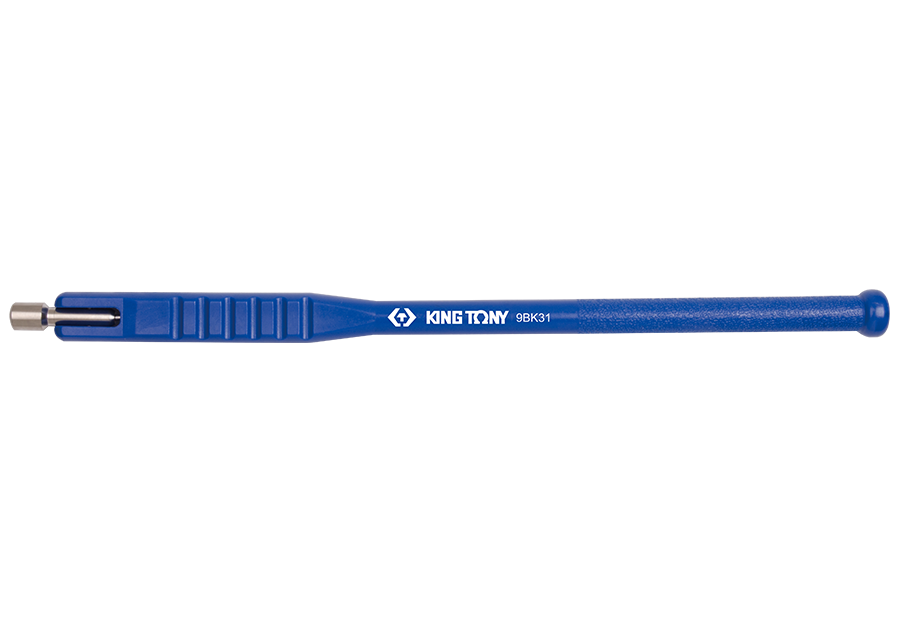 Plastikowy przeciągacz do zaworów z wkrętakiem przeznaczony do montażu wentyli gumowych i wymiany wkładów sprężynowych. Wystarczy nakręcić wahliwą końcówkę narzędzia na gwint zaworu, oprzeć dźwignię o rant felgi i przeciągnąć. Na końcu rękojeści wkrętak do wymiany sprężynek. Przyrząd wykonany z mocnego kompozytu, zapobiega powstawaniu zarysowań na krawędzi felgi aluminiowej. Blokada kulowa unieruchamia końcówkę podczas nakręcania na zawór. Nacięcia u podstawy nie pozwalają ześlizgnąć się dźwigni z felgi.