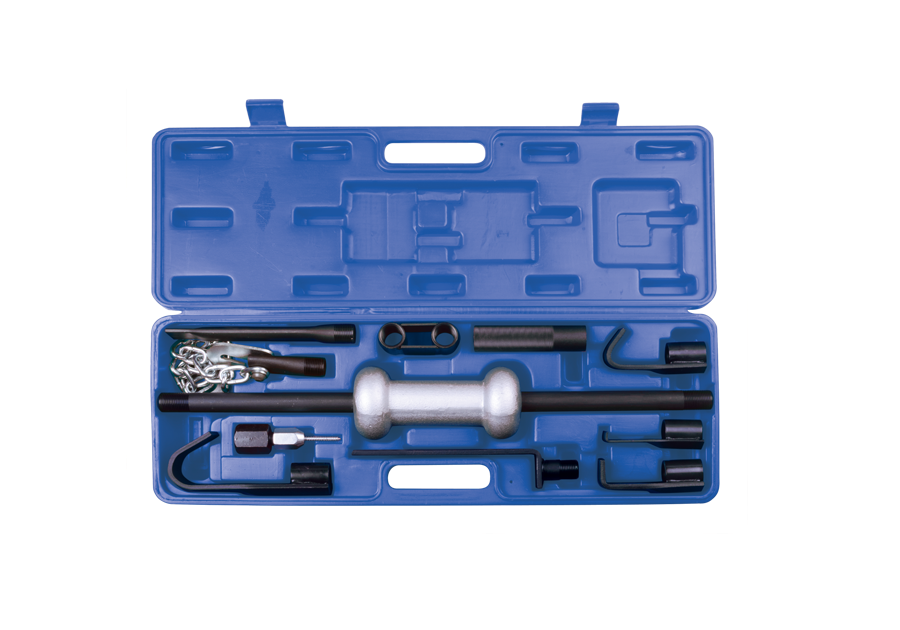 Profesjonalny blacharski, młotek bezwładnościowy z zestawem przyłączy, uchwytów, haków i adapterów do napraw karoserii. Do wszelkich prac blacharskich, do wyciągania. bieżni łożysk i innych ciasno osadzonych części w miejscach trudno dostępnych.