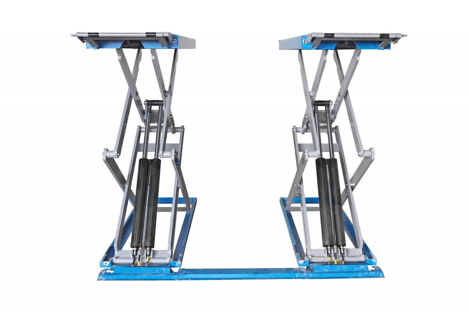 - Podnośnik elektrohydrauliczny z 4 siłownikami. Kompaktowa budowa nożycowa. Montaż na posadzce (wysokość 112 mm)