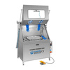 Hydro Power 1200 to profesjonalna myjka ciśnieniowa, wykonana z wysokiej jakości stali nierdzewnej o szerokim zastosowaniu. Myjka bardzo dobrze sprawdza się przy regeneracji turbosprężarek oraz przy czyszczeniu silnie zabrudzonych części ze stali, żeliwa, aluminium i innych stopów. Mycie odbywa się w obiegu zamkniętym, przy użyciu płynu myjącego MRS Cleaner Ultra Active podgrzewanego do temperatury 45 st.C. Preparat MRS Cleaner Ultra Active wydobywa się z dyszy pistoletu pod ciśnieniem do 140 Bar, dzięki czemu dokładnie myje trudno dostępne miejsca i silnie zabrudzone części z nagarów, smarów, czy olejów. Zarówno temperatura, jak i płyn zwiększają efektywność mycia. Myjka wyposażona jest w dwa filtry. Posiada stopki regulujące, poziom regulacji do 20 cm. Pokrywę myjki wyposażyliśmy w siłowniki pneumatyczne zwiększające bezpieczeństwo i jakość pracy z myjką. W trakcie mycia możną także stosować zamontowany w myjce pędzel przelotowy lub pistolet z powietrzem sprężonym.Na szybie znajdują się dysze czyszczące , co umożliwia widoczność pracy myjki.