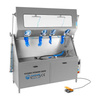 Hydro Power 2000 to profesjonalna myjka ciśnieniowa, wykonana z wysokiej jakości stali nierdzewnej o szerokim zastosowaniu. Myjka bardzo dobrze sprawdza się przy regeneracji turbosprężarek oraz przy czyszczeniu silnie zabrudzonych części ze stali, żeliwa, aluminium i innych stopów. Mycie odbywa się w obiegu zamkniętym, przy użyciu płynu myjącego MRS Cleaner Ultra Active podgrzewanego do temperatury 45 st.C. Preparat MRS Cleaner Ultra Active wydobywa się z dyszy pistoletu pod ciśnieniem do 140 Bar, dzięki czemu dokładnie myje trudno dostępne miejsca i silnie zabrudzone części z nagarów, smarów, czy olejów. Zarówno temperatura, jak i płyn zwiększają efektywność mycia. Myjka wyposażona jest w dwa filtry. Posiada stopki regulujące, poziom regulacji do 20 cm. Pokrywę myjki wyposażyliśmy w siłowniki pneumatyczne zwiększające bezpieczeństwo i jakość pracy z myjką. W trakcie mycia możną także stosować zamontowany w myjce pędzel przelotowy lub pistolet z powietrzem sprężonym.Na szybie znajdują się dysze czyszczące , co umożliwia widoczność pracy myjki.