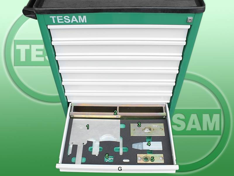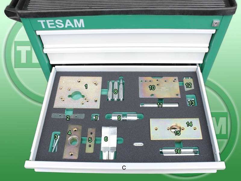 Każde narzędzie posiada przypisane miejsce w szufladzie.
