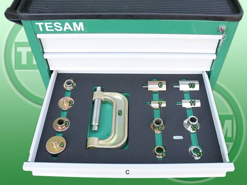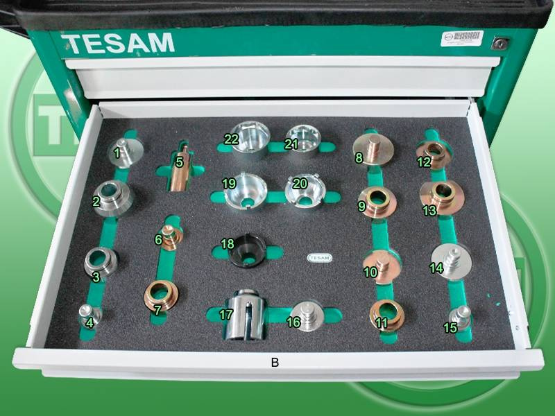 Każde narzędzie posiada przypisane miejsce w szufladzie.