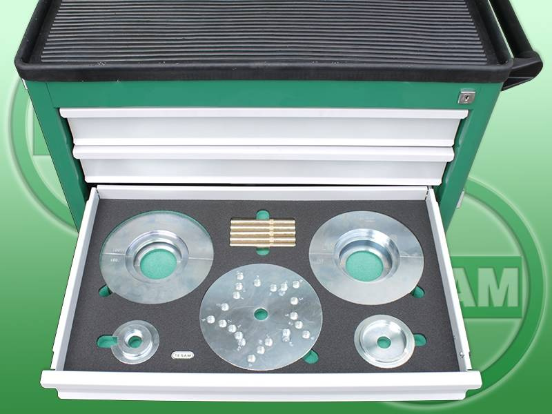 Każde narzędzie posiada przypisane miejsce w szufladzie.