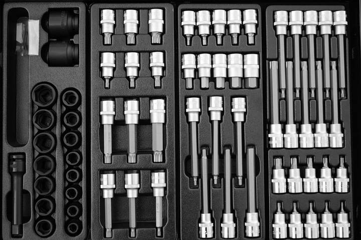 - Bity 3/8” PH 1, 2, 3; PL 4, 5.5, 7; IMB 4, 5, 6, 8; PZ 1, 2; TRX T10, T15, T20, T25, T27, T30, T40, T45, T50