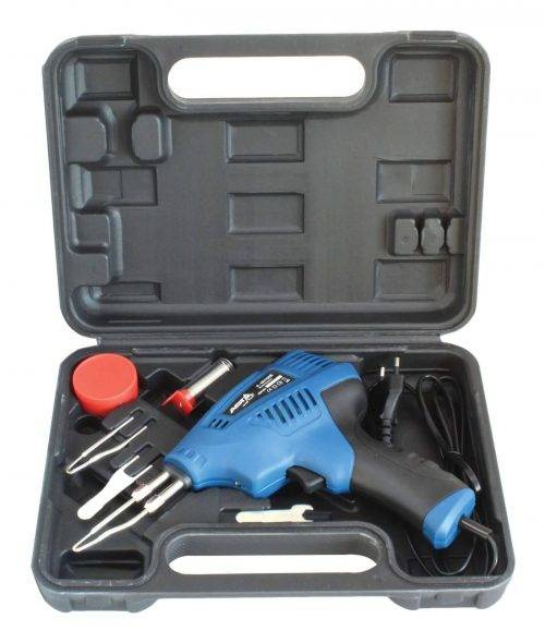 Lutownica pistoletowa zapewnia trzy regulowane zakresy temperatury, które pozwalają użytkownikowi regulować temperaturę końcówki lutowniczej za pomocą pokrętła regulacyjnego.