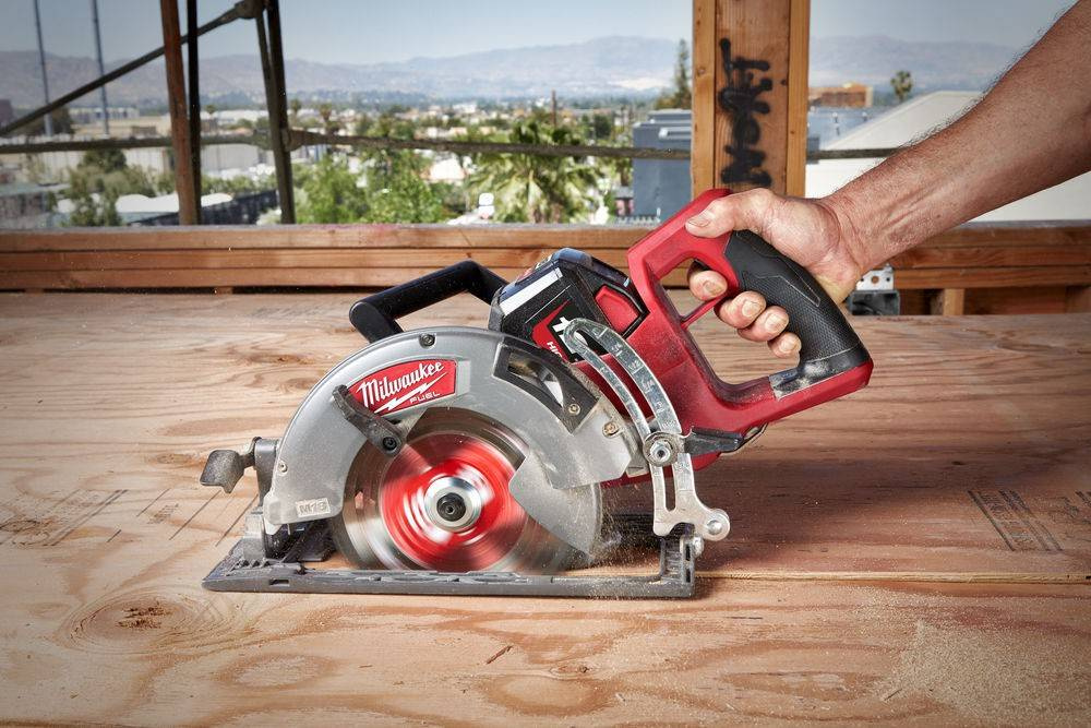 Tarcza 190 mm, tnąca na głębokość 66 mm, gwarantuje, że piła przetnie trzy ułożone w stos płyty OSB